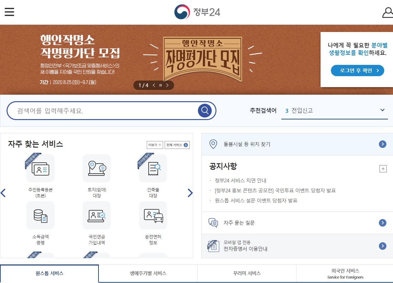 そして、下の“政府24”にて自分のIDを登録します。