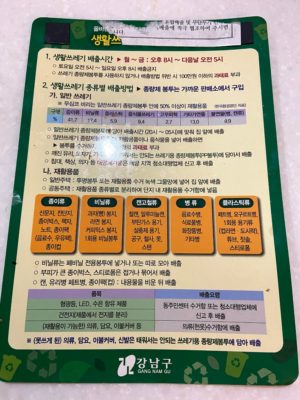 (ドアに貼られていた江南区のゴミ捨て指針)