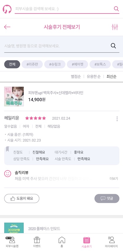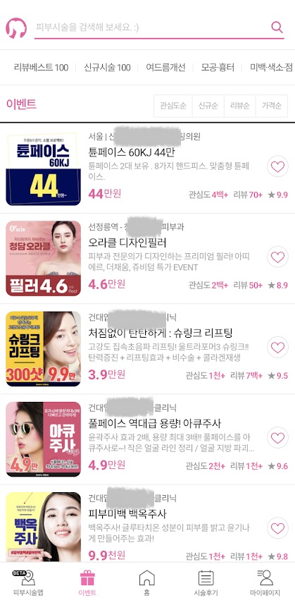 参加しているのは韓国内の約3,500もの皮膚科系の医院で、医院ごとに提供している診療メニューと金額を細かく調べることができ、さらに他に似たような診療をしている医院と比較することもできます。